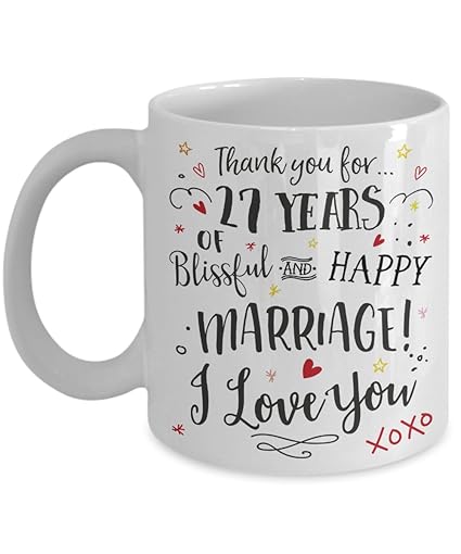 Amazon Com 27th Wedding Anniversary Gift Mug Blissful Happy