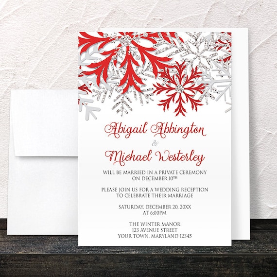 Winter Reception Only Invitations Red Silver Snowflake Post Wedding Reception Printed
