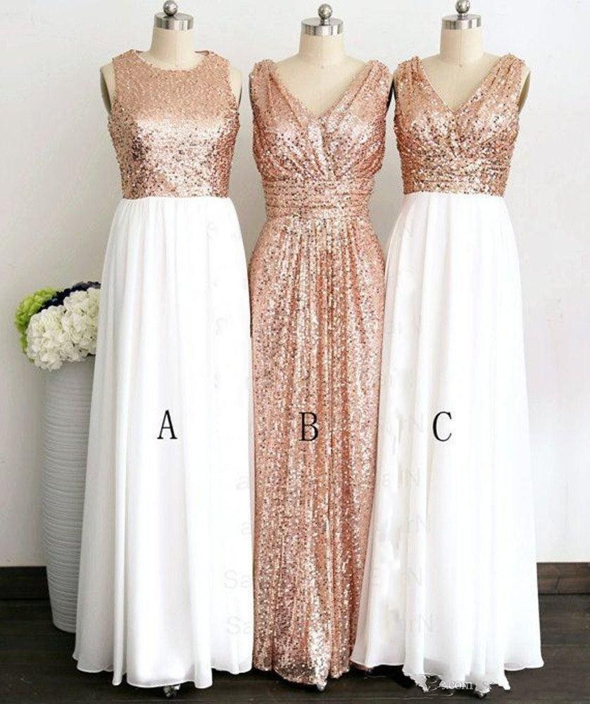 2018 New Rose Gold Sequined Three Different Style Long Bridesmaid Dresses For Wedding Elegant Maid Of Honor Gowns Women Formal Party Dresses