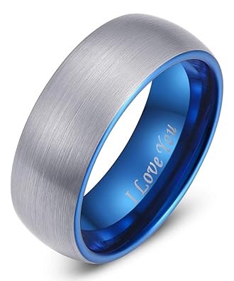 Lauriecinya Blue Tungsten Carbide Ring Men Women Wedding Band 8mm Domed Brushed Finish Comfort Fit I Love You