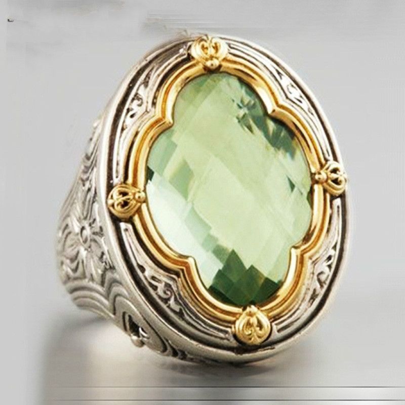 Vintage Unisex Antique Silver Two Tone Olivine Princess Cut Diamond Wedding Engagement Ring Band Matching Set For Men Women Wholesale