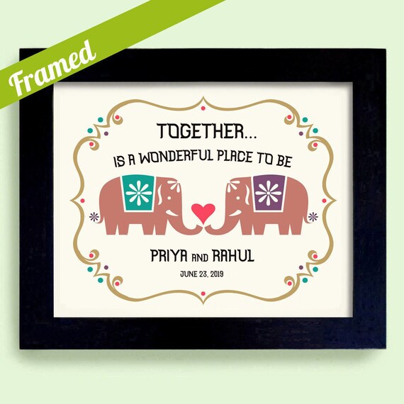 Personalized Indian Wedding Gift Unique Engagement India Wedding Gift Good Luck Framed Gift For Couples Elephants Art Hindu Wedding Art