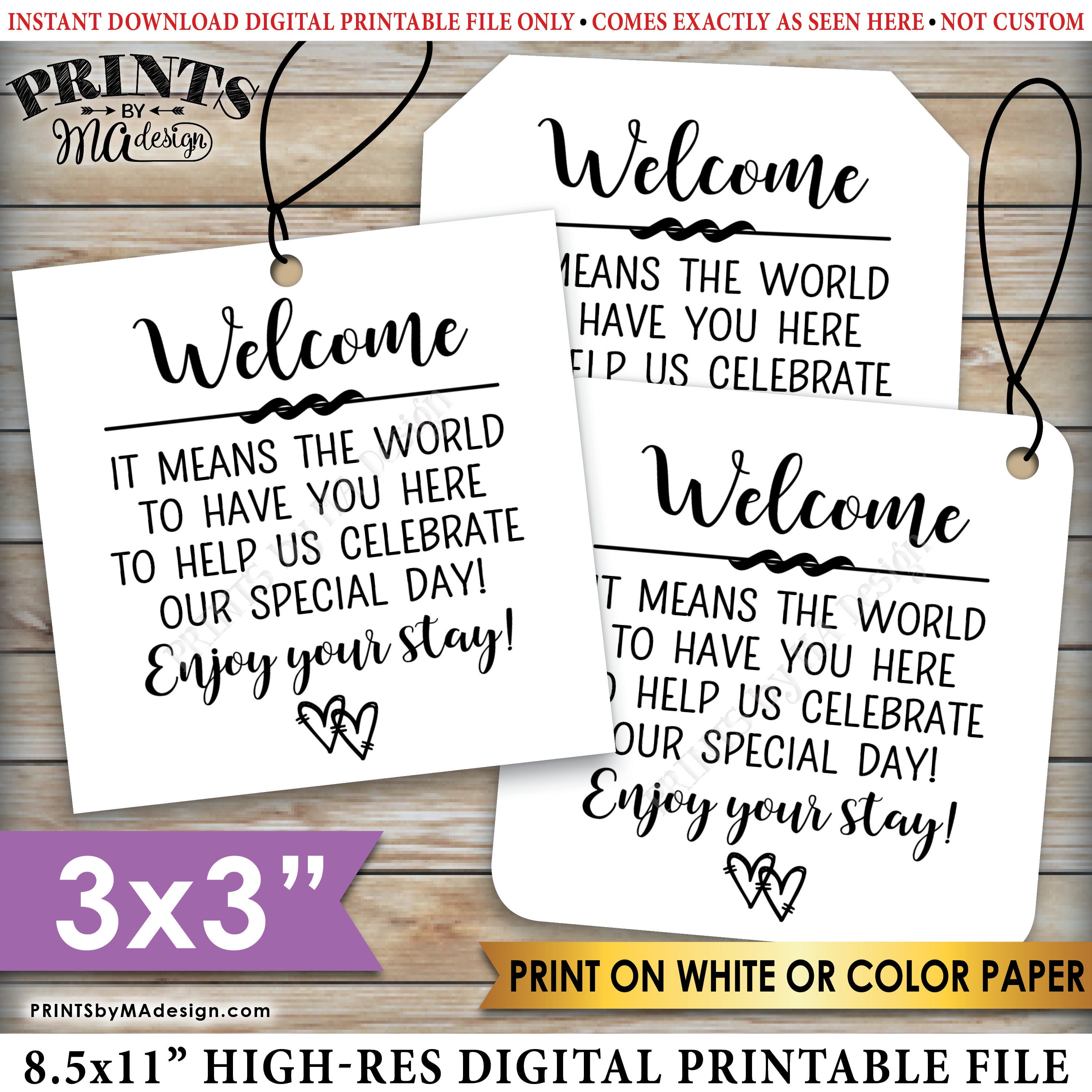 Wedding Tags Destination Wedding Welcome Bag Tags Out Of Town Guests Hotel Gift 3x3 On 8 5x11 Printable Favor Tags