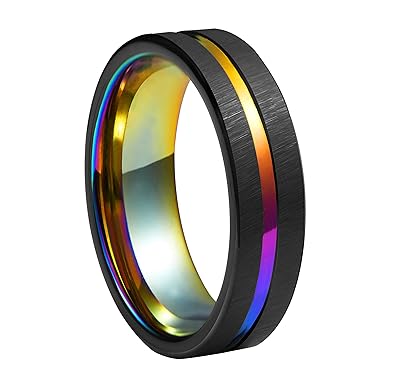 Queenwish 6mm Rainbow Black Brushed Tungsten Wedding Band Triton Gorgeous Center Grooved Couples Rings