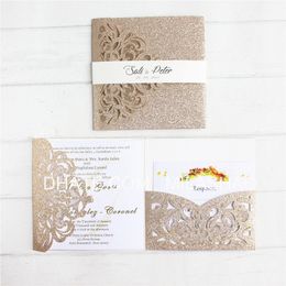 Us 89 0 Aliexpress Com Buy Romantic Silver Spring Flower Glittery Laser Cut Pocket Wedding Invitation Kits With Rsvp Card 20 Colors Are