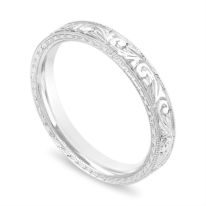 Hand Engraved White Gold Men S Wedding Band Ring Antique Mens