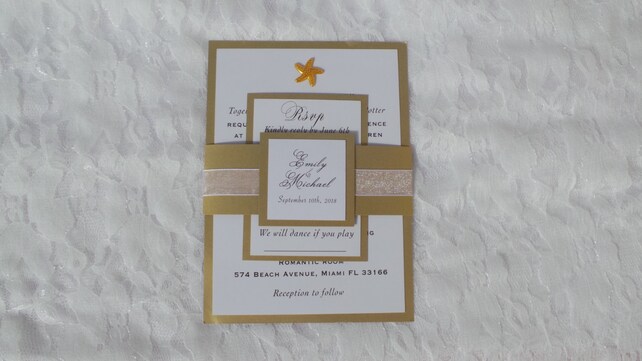 30 Beach Wedding Invitations With Rsvp Cards Starfish Soft Gold