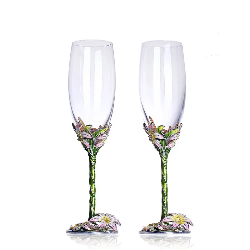 Us 63 0 Wine Glasses Enamel Flowers Champagne Flutes Coupe Champagne Glasses Wedding Champagne Flutes Flute Glass Wedding Decorations In Other Glass