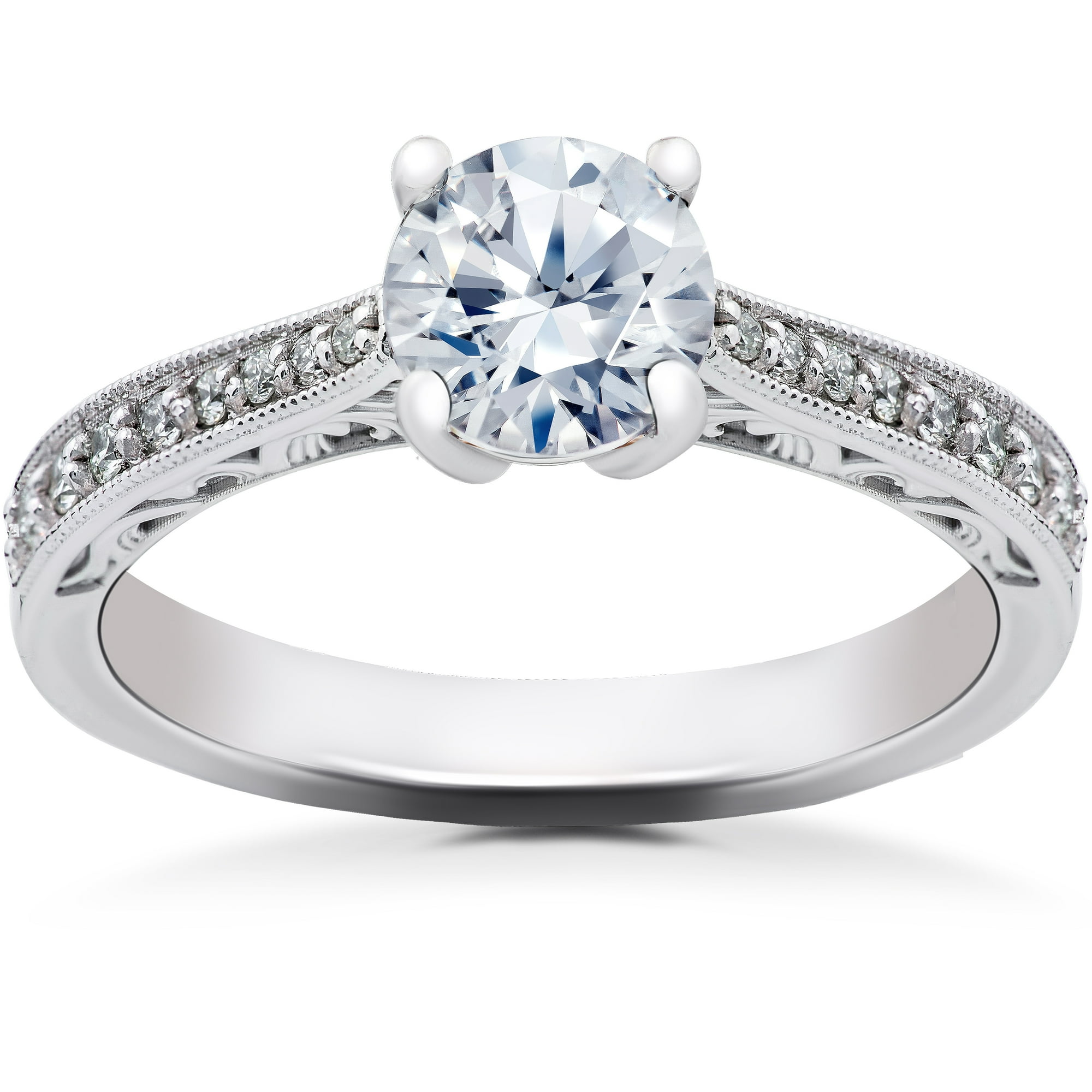 1 1 6 Ct Lab Grown Eco Friendly Diamond Vintage Engagement Ring 14k White Gold