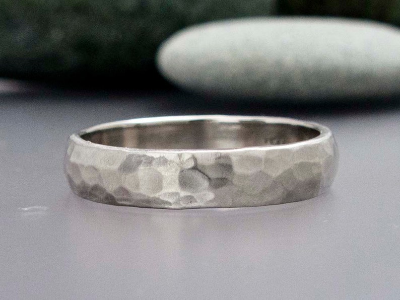 Men S Hammered White Gold Wedding Ring With Polished Edges 4mm