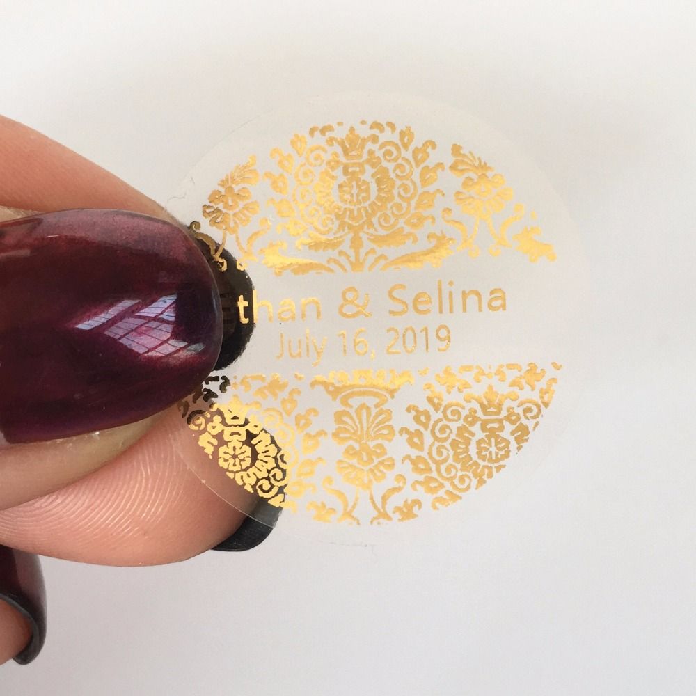 60 Ct Custom Wedding Thank You Gift Tags Waterproof Gold Transparent Damask Favor Foil Gold Stickers 3cm