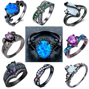 Details About Fashion 18k Black Gold Filled Blue Fire Opal Amethyst Sapphire Wedding Ring
