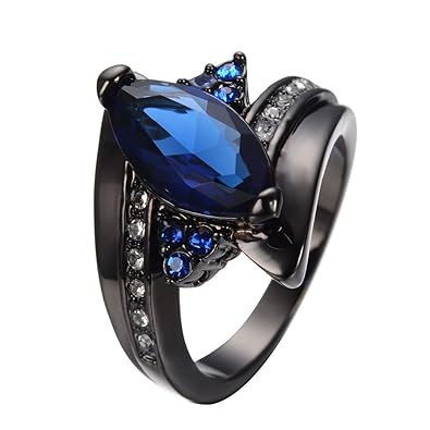 Women Fashion 14k Black Gold Plated Blue Sapphire Engagement Wedding Ring Size 6 7 8 9 10