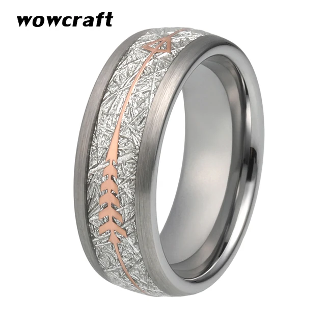 Us 16 68 8mm Silver Gold Rose Gold Tungsten Steel Rings For Men Women Wedding Bands Arrow Inlay Meteorite Inlay Matte Finish Comfort Fit In Wedding