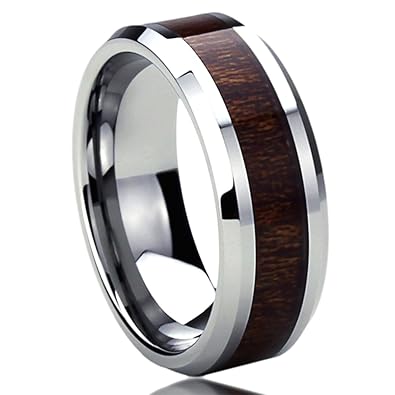 Prime Pristine 8mm Titanium Mens Womens Rings Wood Grain Inlay Comfort Fit Beveled Edges Wedding Bands