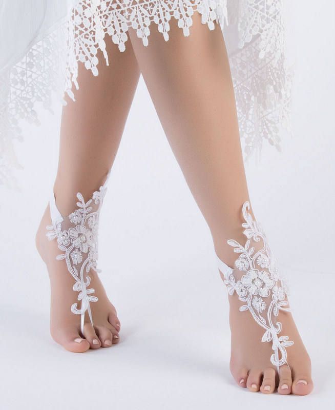 Gorgeous Bridal Shoes White For Beach Wedding Free Size Pearls Bridal Accessories Lace Appliques Footchain In Stock