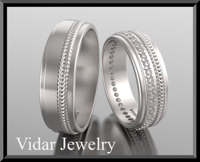 His And Hers White Gold Ring Set Matching Wedding Bands Set Unique Wedding Band Pair Eternity Matching Wedding Ring Set Ring Couple Set