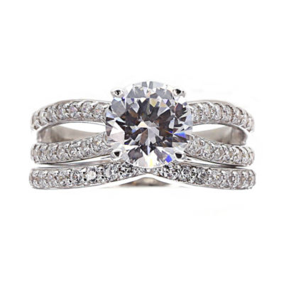 Diamonart Cubic Zirconia Sterling Silver Bridal Ring Set