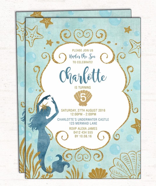 Little Mermaid Birthday Invitation Under The Sea Party Invite Teal Gold Starfish