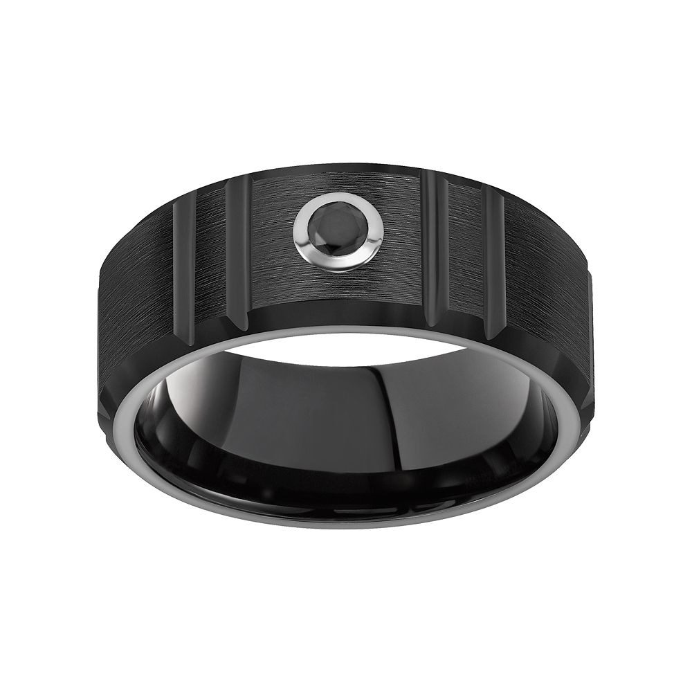 Men S 0 09 Ct T W Diamond Three Stone Black Ip Tungsten Wedding Band Size 10 Peoples Jewellers