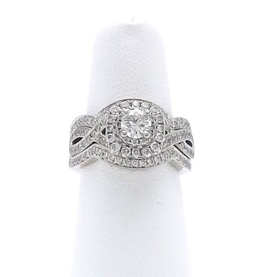 Neil Lane 14k Gold 1 28ctw Round Diamond Halo Engagement Curved Wedding Band Set Ebay