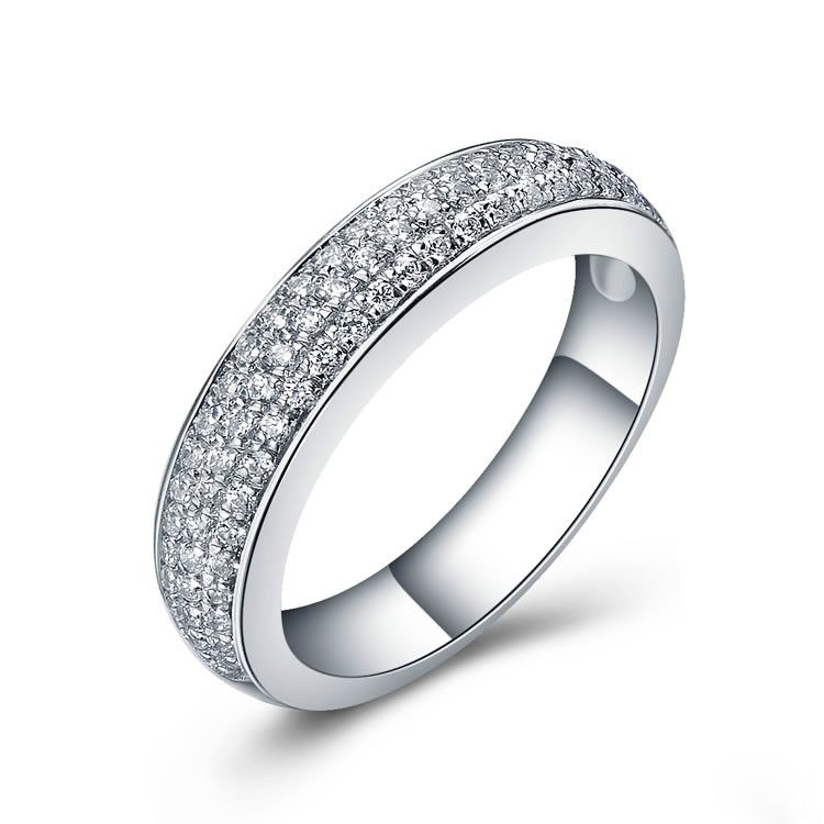 Pave Diamond Wedding Band 3 Row Pave Ring