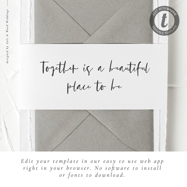 Invitation Belly Band For Simple Elegant Wedding Invitations Minimal Wedding Invitation Wrap Printable Editable Template 018