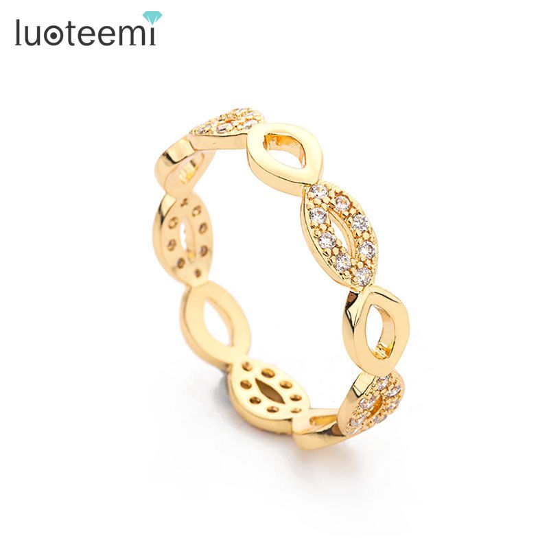 Simple Design Elegant Wedding Ring Made With Cz Crystals Full Sizes Champagne Gold Color For Women Wholesale Jewelry Luoteemi