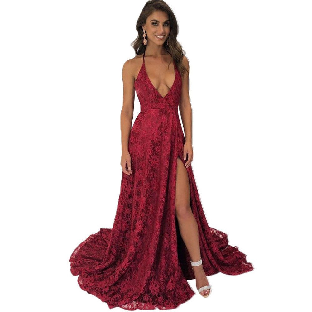 Sexy Women Formal Wedding Dress Long Evening Party Backless V Neck Dress Lace Halter Women Dresses Summer Fashion
