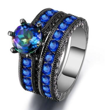 14k Black Gold Plated His Her Men S Women S Blue Sapphire Wedding Ring Bridal Set