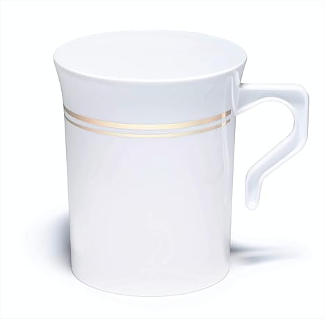 Occasions 40 Mugs Pack Heavyweight Disposable Wedding Party Plastic 8 Oz Coffee Mugs Gold Trim Tea Cups Cappuccino Cups Espresso Cup With Handles