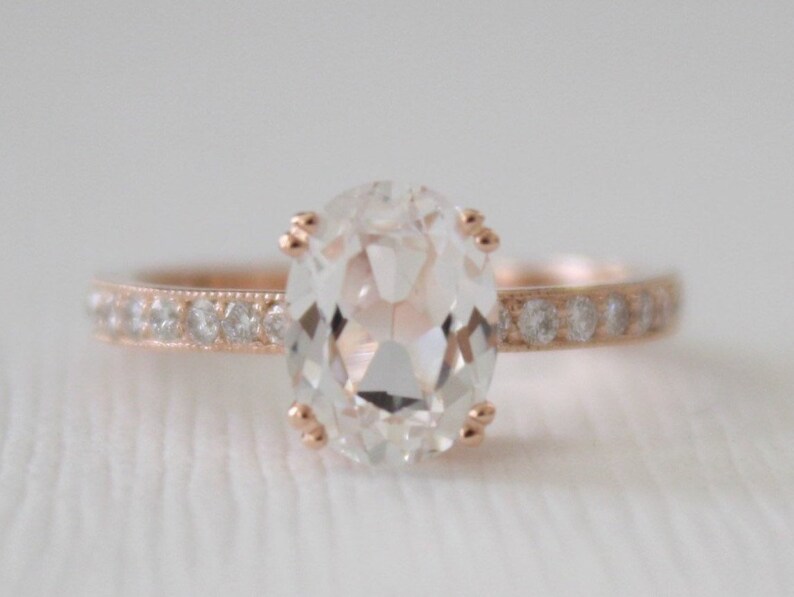 Solitaire Oval White Sapphire Diamond Half Eternity Engagement Ring Diamond Alternative Wedding Ring In 14k Rose Gold