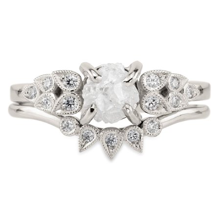1 5 Carat Rough Raw Gray Diamond Alternate Unique Wedding Ring Set On 18k White Gold Over Silver