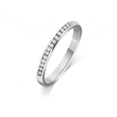 9ct White Gold Ladies 2mm Court Shape Wedding Band Channel Set With 0 15ct Of Diamonds