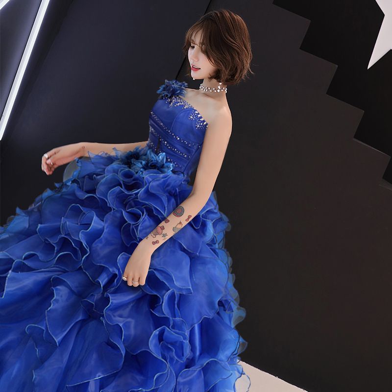 Color Yarn Wedding Student Art Exam Dress Stage Fluffy Skirt Annual Meeting Host Dress Long Costume Woman