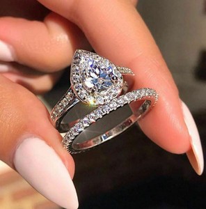 Igem 925 silver pear cut white topaz gemstone ring set wedding engagement wholesale 8 2626 26. Certified pear shaped diamond frame bridal set in 14k white gold isi2 2. No matter what youre looking for or where you are in the world our global marketplace of sellers can help you find unique and affordable options.