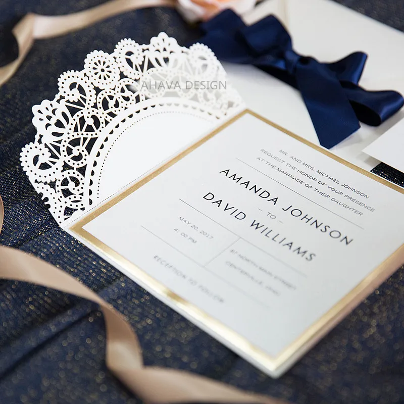Us 89 0 Aliexpress Com Buy Elegant Rose Gold And Navy Blue Glitter Wedding Invitations With Gold Glittery Mirror Paper Bottom From Reliable Cards