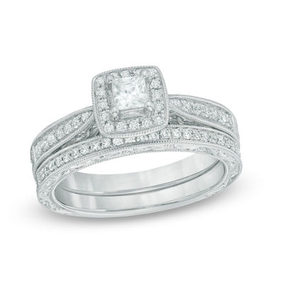 1 2 Ct T W Certified Canadian Diamond Frame Vintage Style Bridal Set In 14k White Gold I I2 Zales Outlet