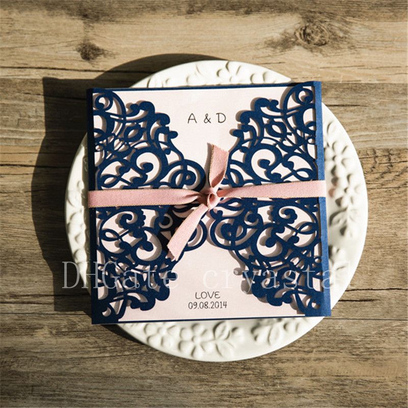 2018 European Classic Navy Blue Blush Pink Laser Cut Wedding Invites With Blank Inner Shee T Whimsical Wedding Invitations Words For Wedding