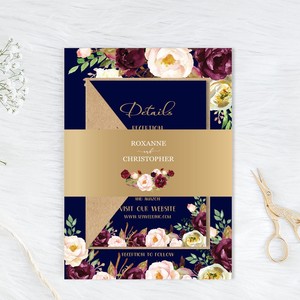 Navy Blue Wedding Invitation Burgundy Wine Gold Blush Floral Invite Sc516 120lb
