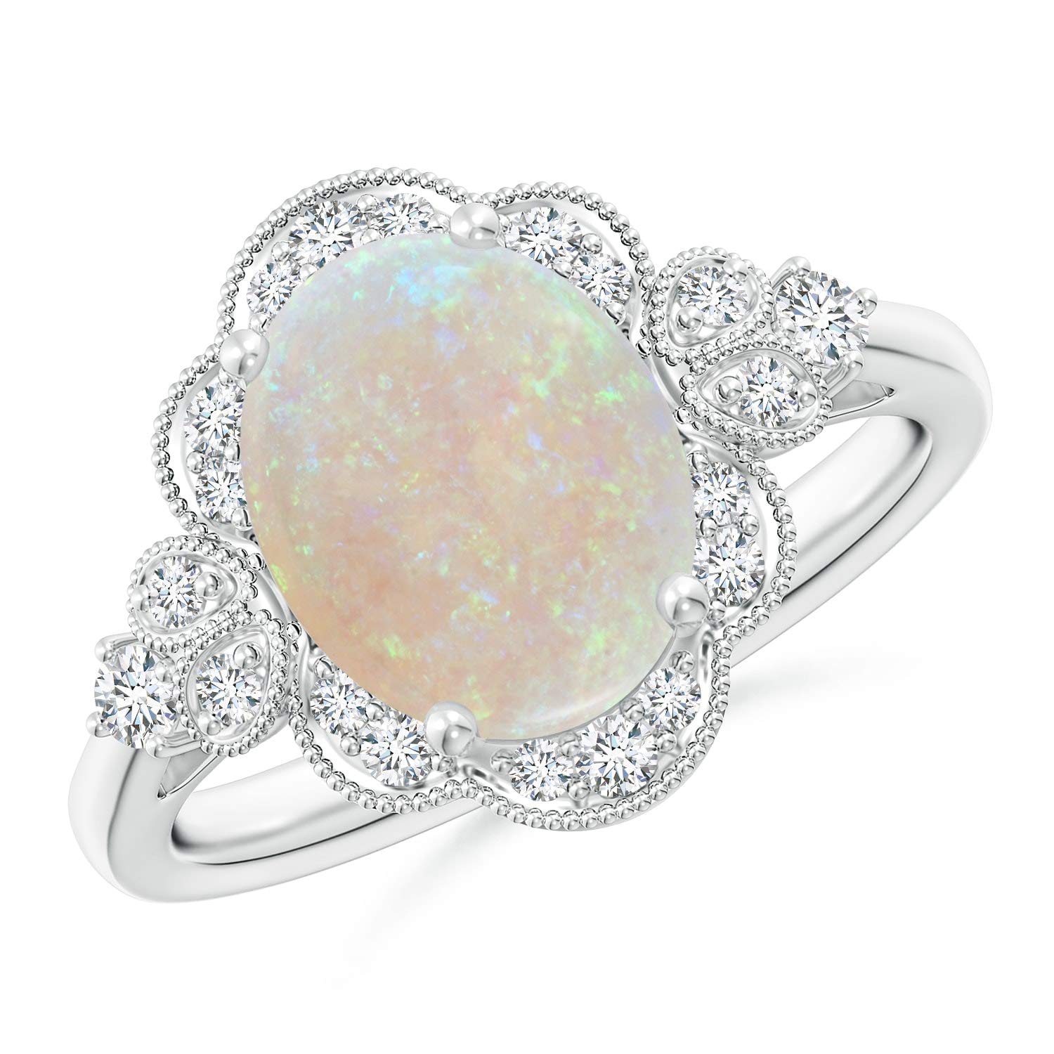 October Birthstone Victorian Style Natural Oval Opal And Diamond