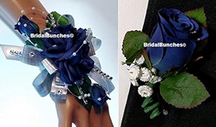 Amazon Com Bridal Bunches Navy Blue Silver Boutonniere And Corsage