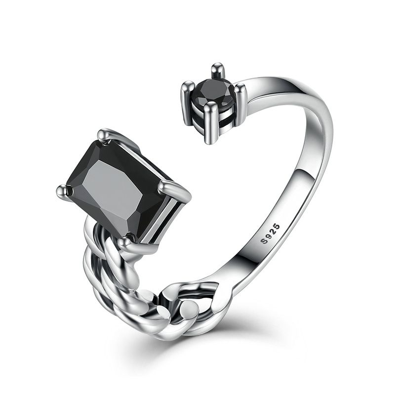 Original 925 Sterling Silver Ring For Women Lady Round Square Black Stone Opening Adjustable Rings Fine Jewelry Vsr043