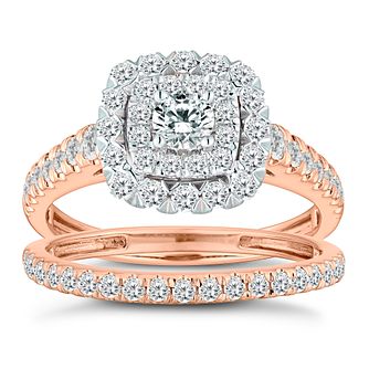 18ct Rose Gold 1ct Diamond Cushion Bridal Ring Set