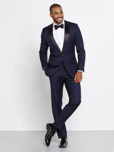 Wholesale 2016 Navy Blue Men Wedding Suits Custom Made Slim Fit Wedding Groom Tuxedos For Men Groomsman Best Man Suit Jacket Pants Bow