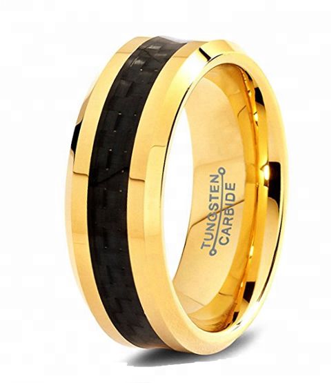 Men S Tungsten Wedding Ring With Black Carbon Fiber Inlay 8mm