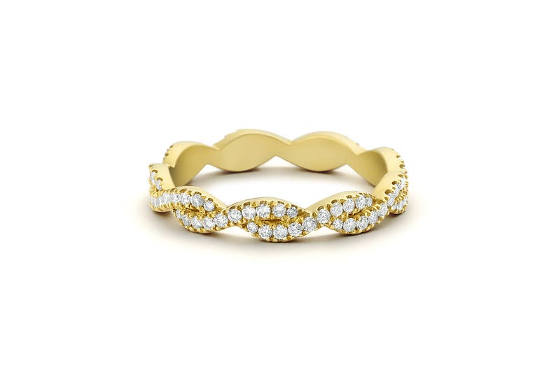 14k Gold Infinity Diamond Eternity Wedding Band Criss Cross Braided Eternity Band Diamond Criss Cross Infinity Twist Wedding Band