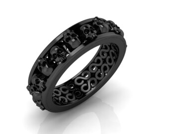Amazon Com Mens Skull Wedding Band Plain Bottom And Black In