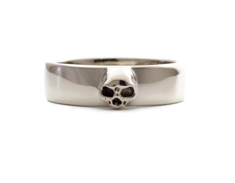 Mens Skull Wedding Ring White Gold Grooms Skull Ring Goth Groom Ring Small Mens Skull Ring Psychobilly Wedding Band Wedding Set All Sizes