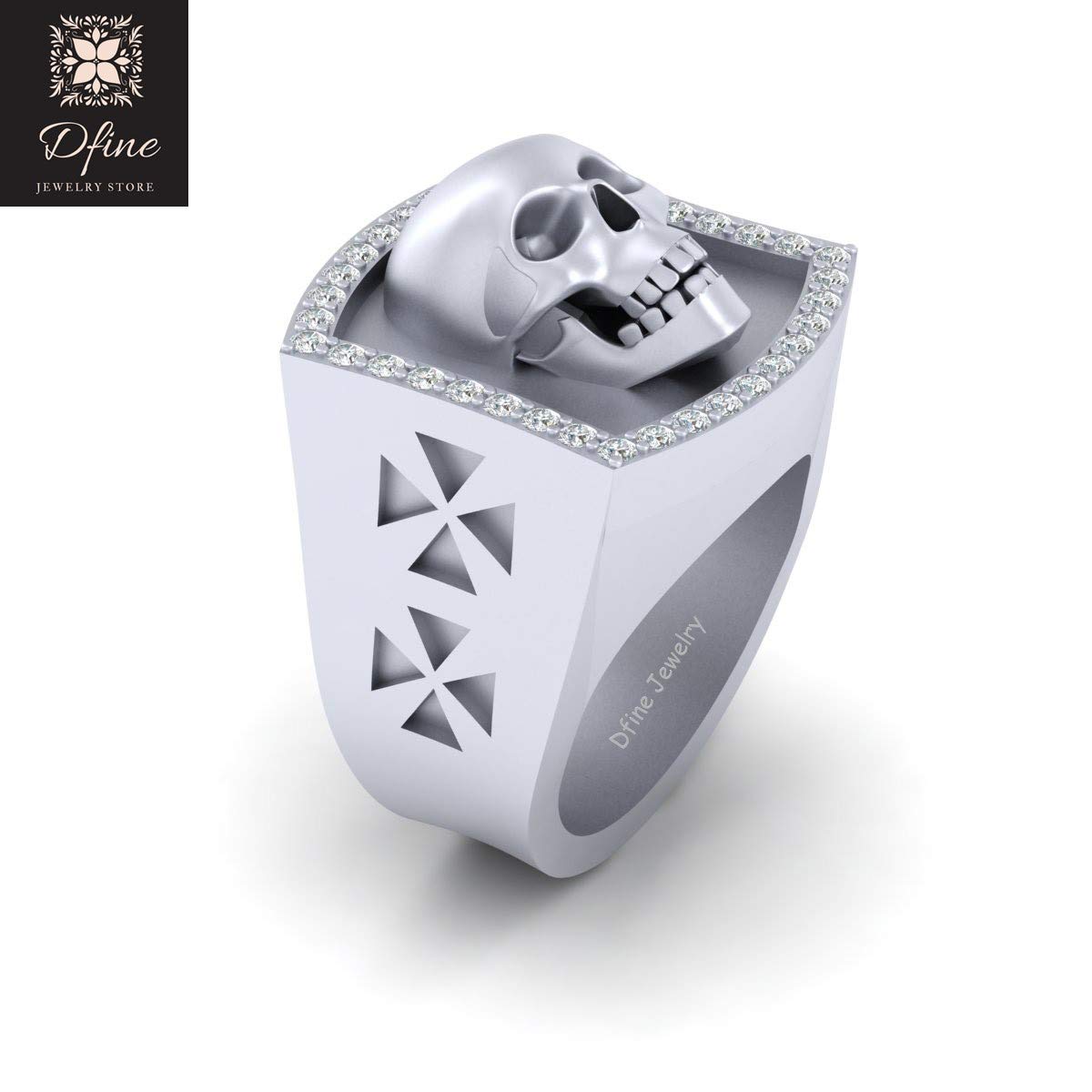 Amazon Com Classic Sterling Silver Diamond Skull Wedding Ring Band